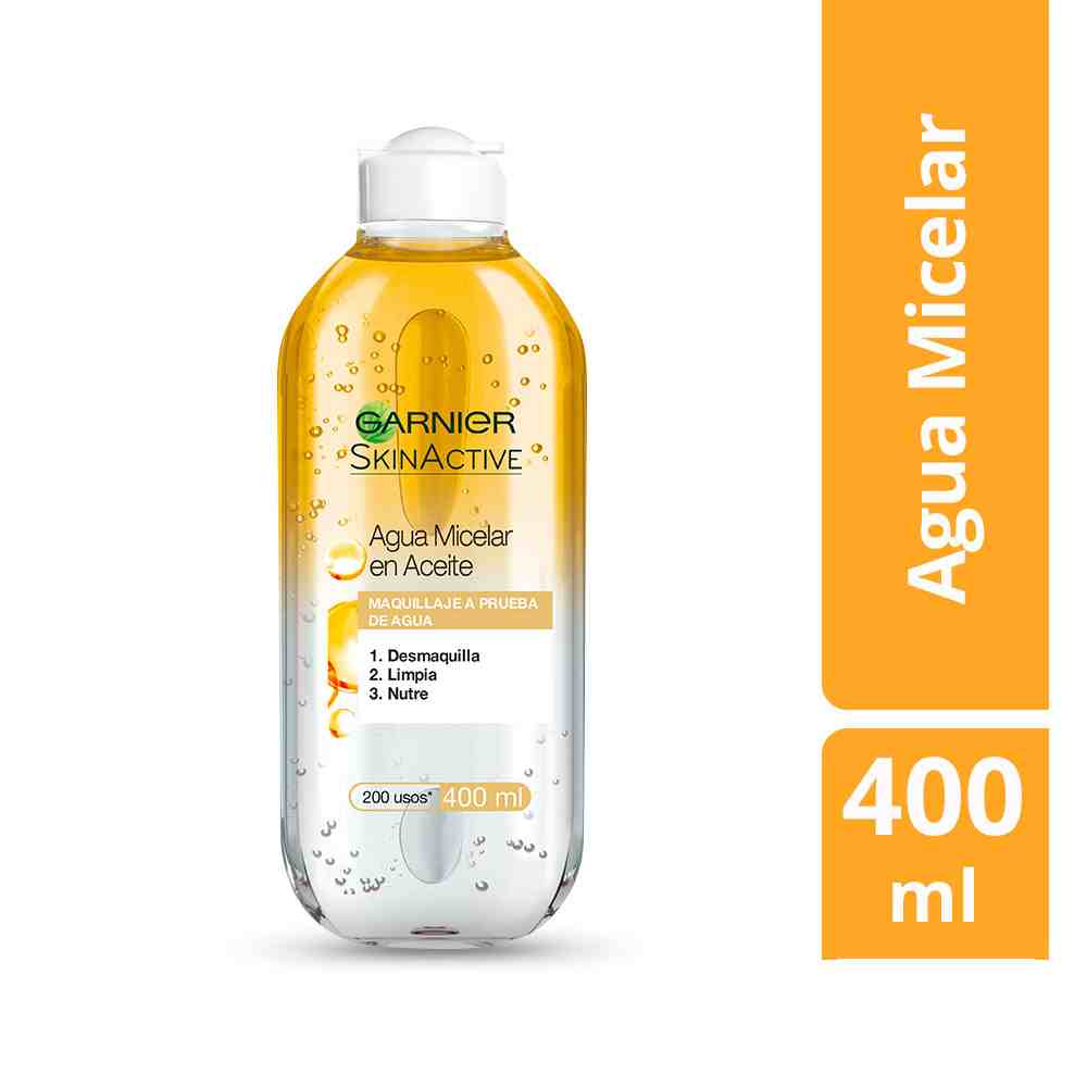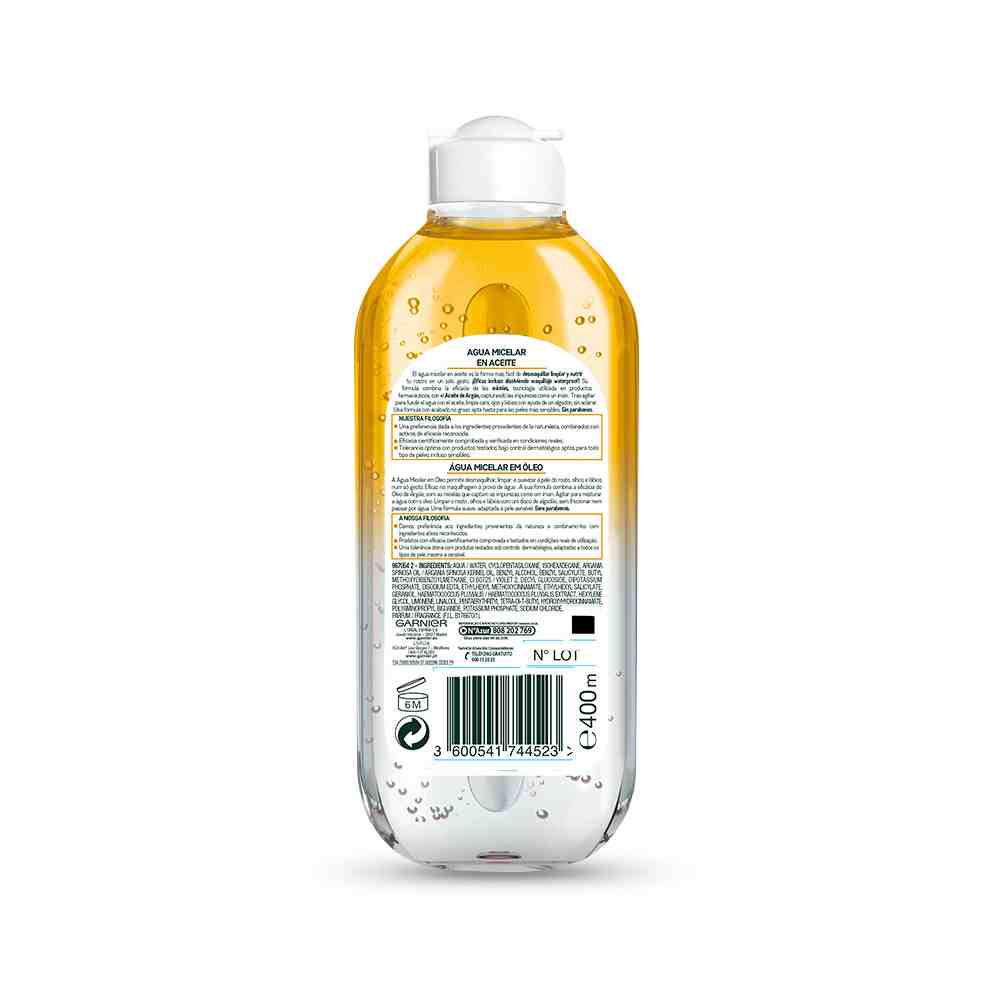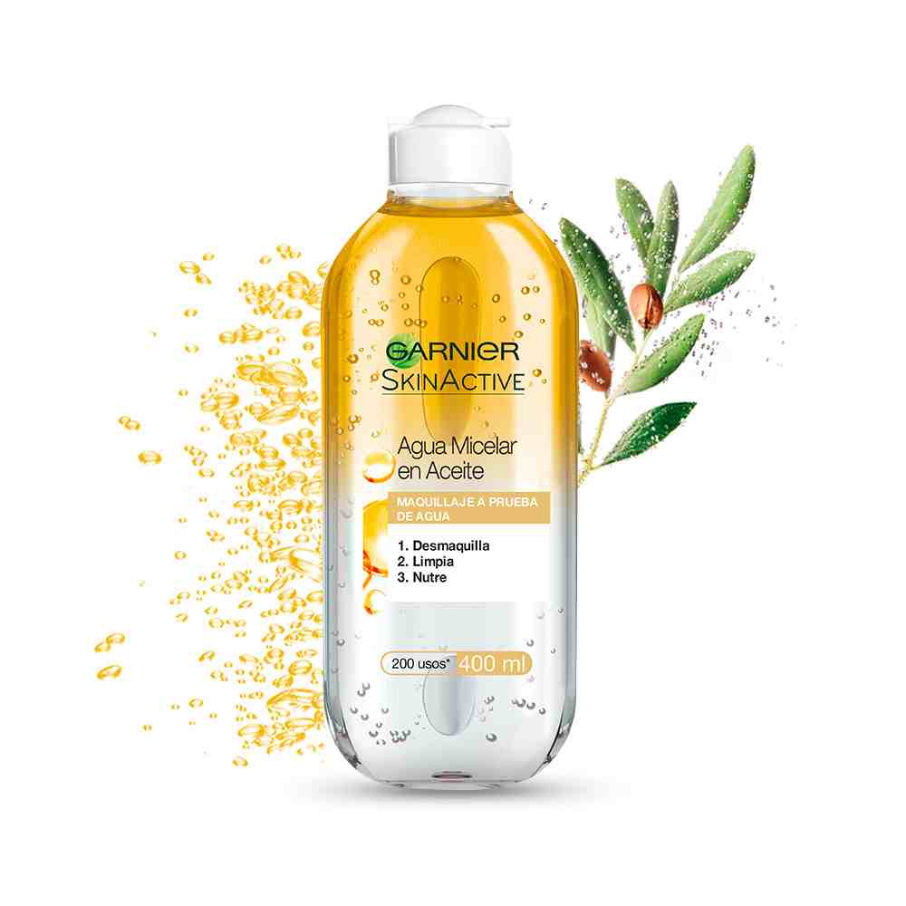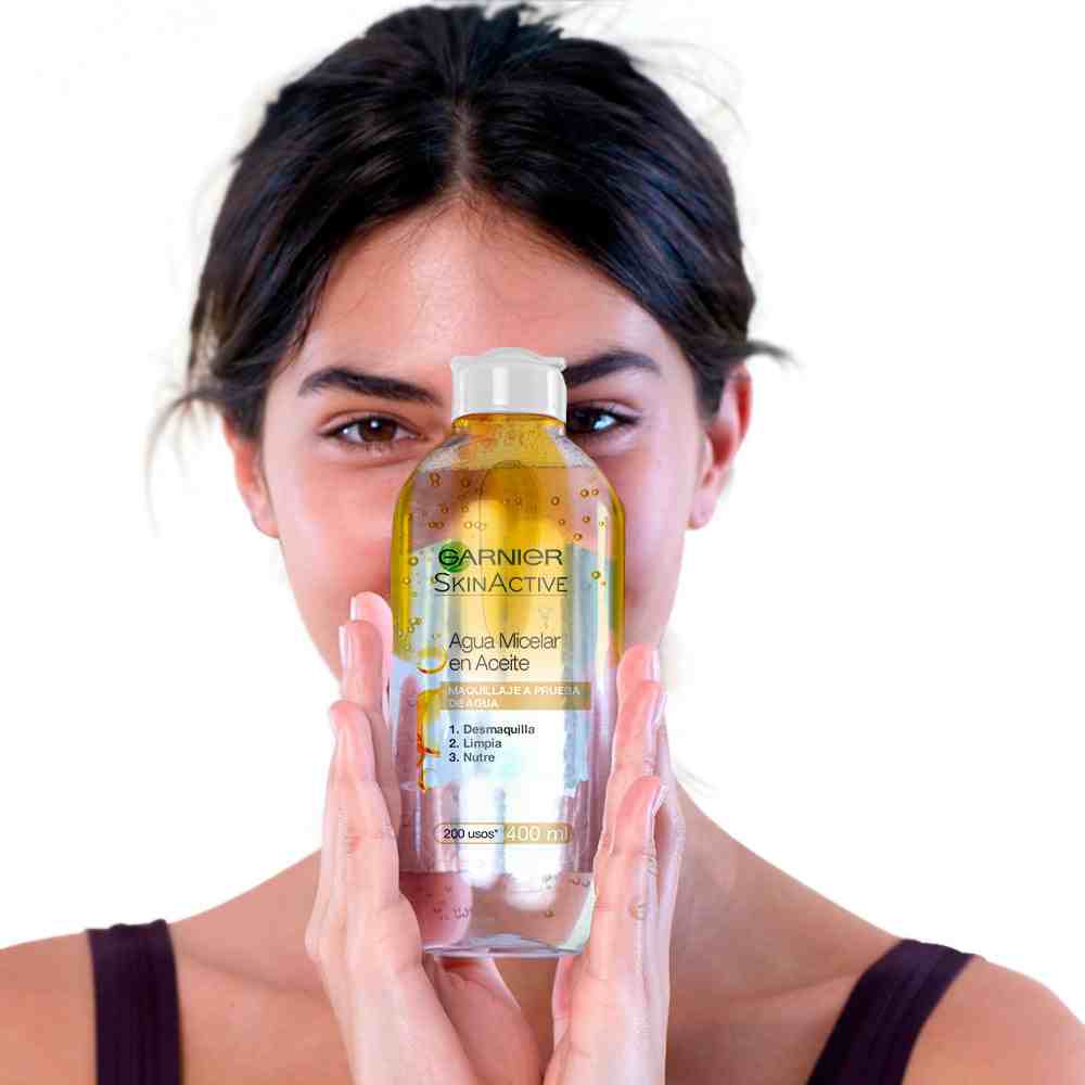 El Agua Micelar Bifasica de Garnier con Aceite de Argán: Limpia, desmaquilla y nutre tu rostro incluyendo labios y ojos. Es perfecta para eliminar el maquillaje a prueba de agua.