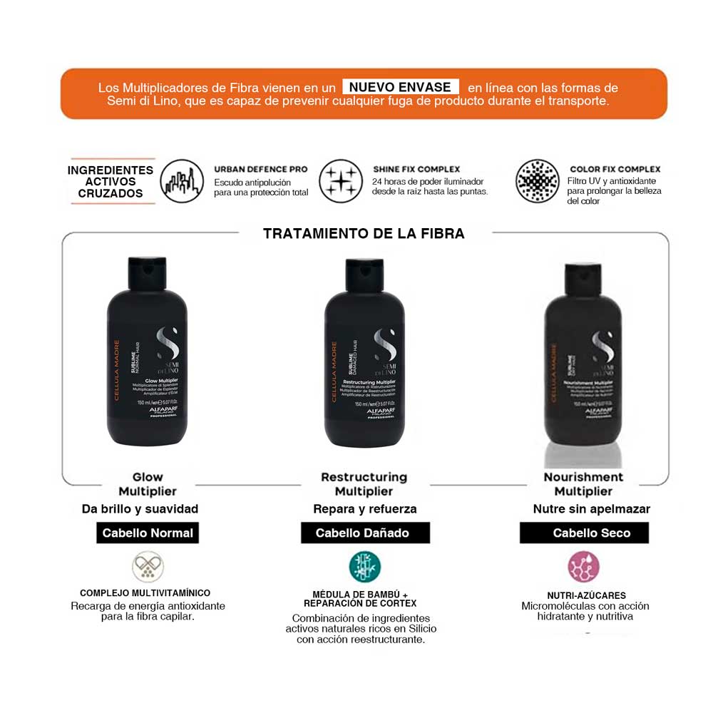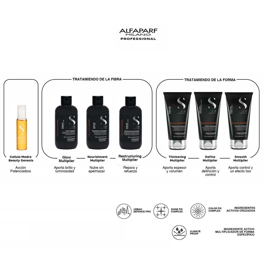 El cabello queda suave y brilloso. Aroma especiado, cítrico y amaderado. Para potenciar su efecto combine con la ampolla Semi di Lino Cellula Madre Beauty Genesis.