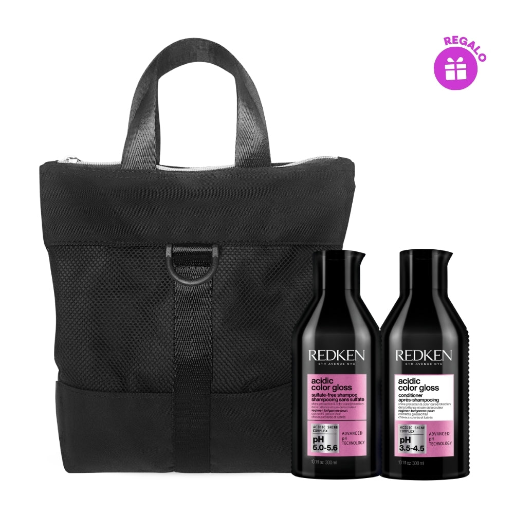 El Pack contiene: 01 Shampoo Redken para Cabello con Color Acidic Color Gloss 300 ml + 01 Acondicionador para Cabello con Color Redken Acidic Color Gloss 300 ml + Regalo Neceser Redken.