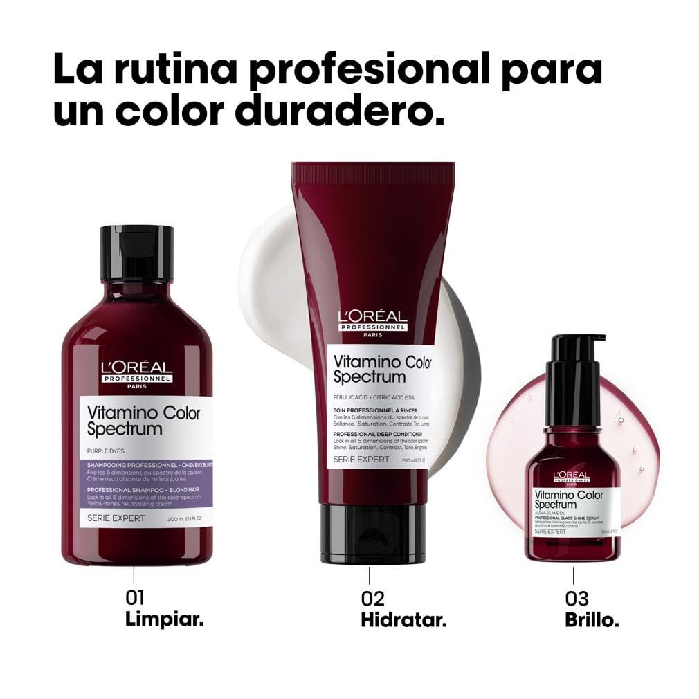 A continuación, aplicar el acondicionador Vitamino Color Spectrum o la mascarilla, y el sérumGlassShine.
