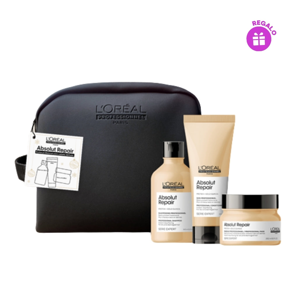 Shampoo Absolut Repair 300ml + Acondicionador Absolut Repair 200ml + Mascarilla Absolut Repair 250ml + Regalo: Bolso Loreal Professionnel.
